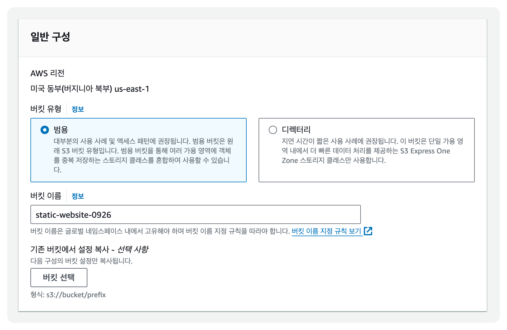 버킷 이름은 글로벌하게 고유해야 한다. 즉, 모든 리전에 거쳐서 중복되는 이름으로 설정할 수 없음.